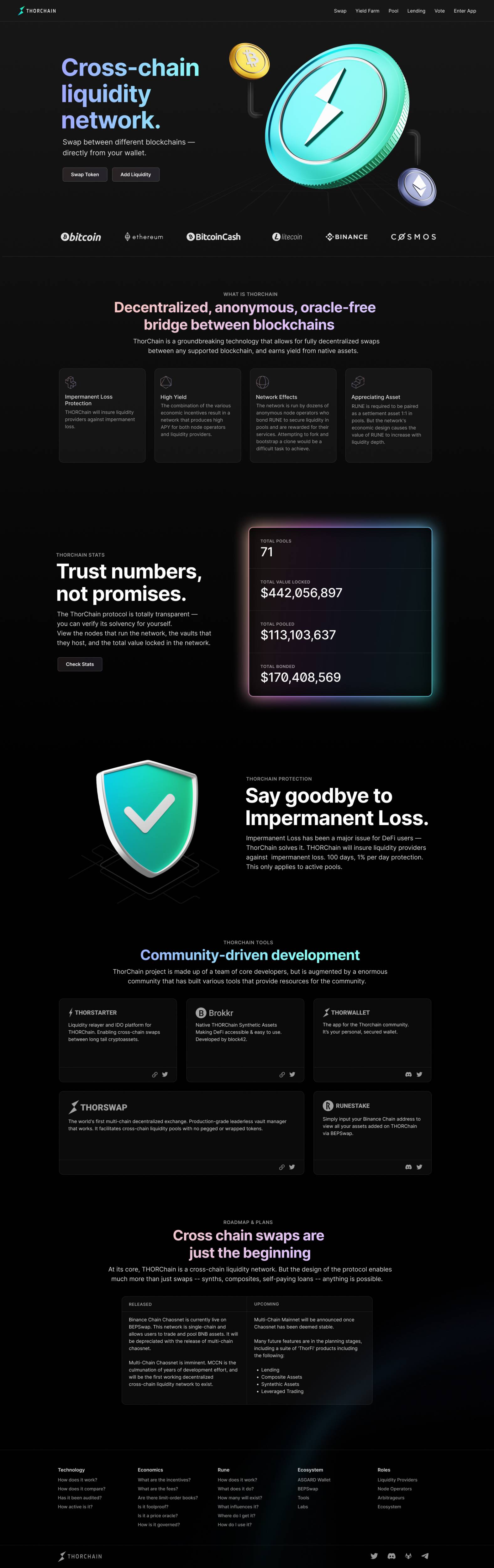 THORChain ⚡ is revolutionary as it solves one of the major issues in crypto space. It allows to trade one digital asset on one chain with another digital asset on another chain in a frictionless, decentralized, trust-minimized way. There are no custodians. It also allows anyone to earn yield on their digital assets.